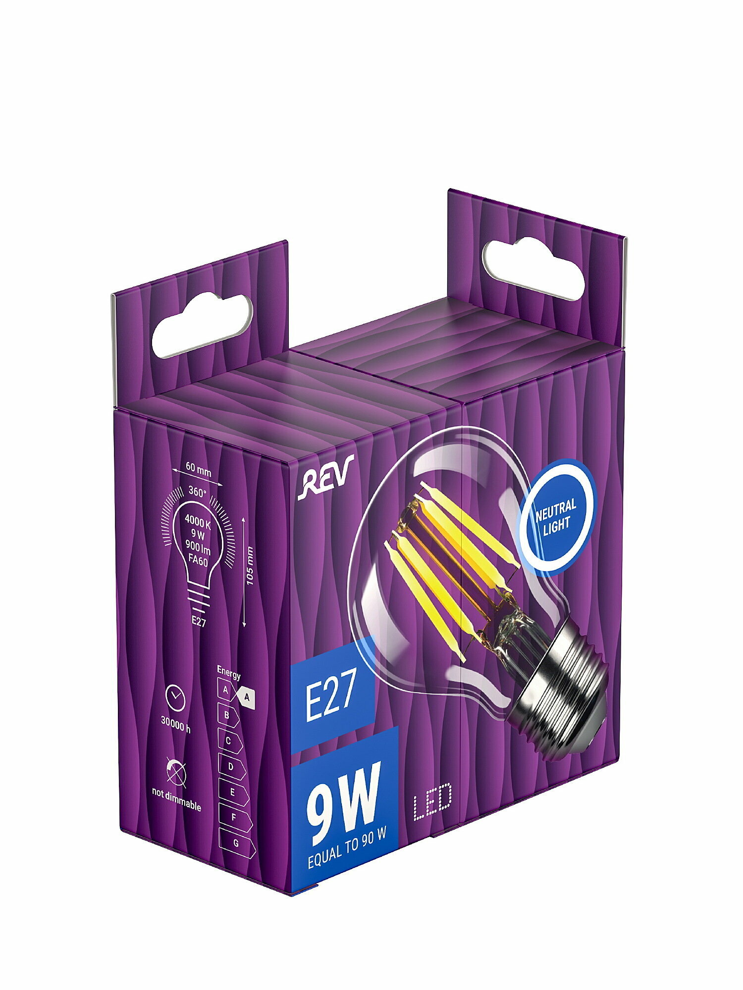 REV Лампа светодиодная A60 E27 9W, 4000K 32476 8