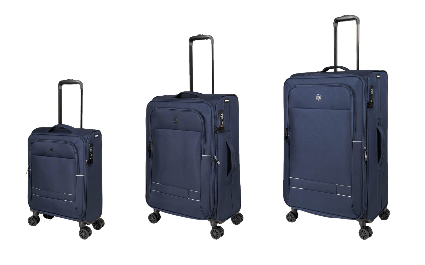 Набор из 3 чемоданов TORBER Brosno, размеры S (32 л., 54х36,5х20 см.), M (56 л., 68х43,5х26 см.), L (85 л., 78х48х30 см.), синий, нейлон 600D