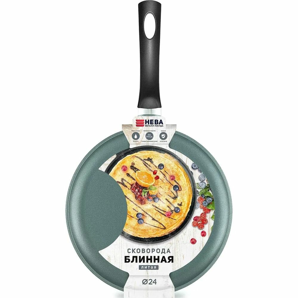 Сковорода блинная нева металл посуда 6224 24 см, черный