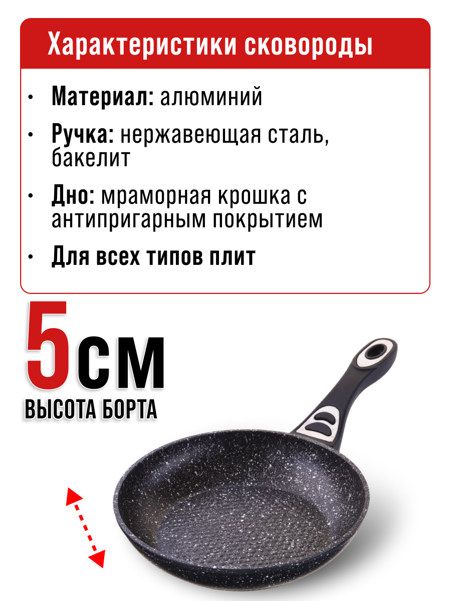 Сковорода алюминиевая Mayer&Boch 22 см с антипригарным мраморным покрытием 25621