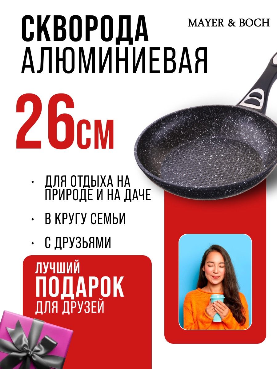 СохранитьСковорода MAYER & BOCH MB-25620, MB-25621, MB-25623, диаметр 26 см, 45х26 см интересное:
