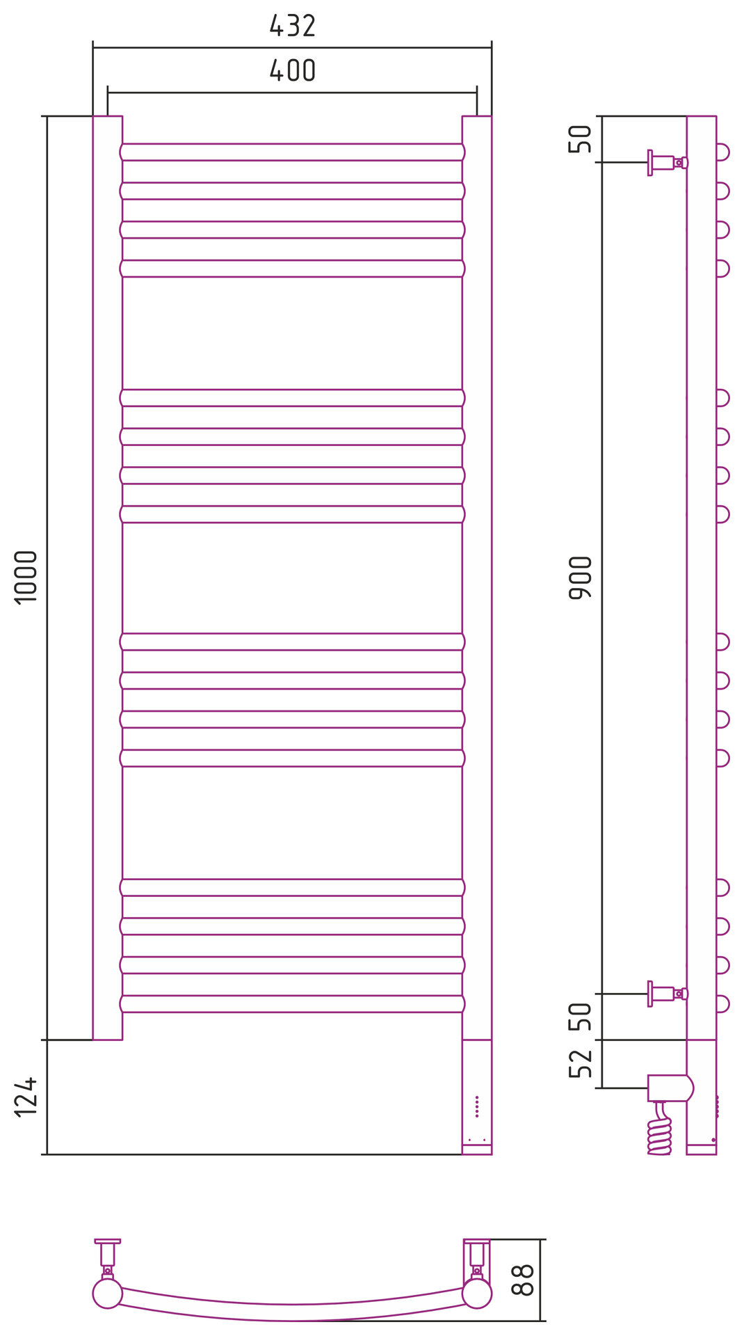 Электрический полотенцесушитель Сунержа Богема 3.0 выгнутая 1000x400 МЭМ Пр. матовый черный арт. 31-5803-1040