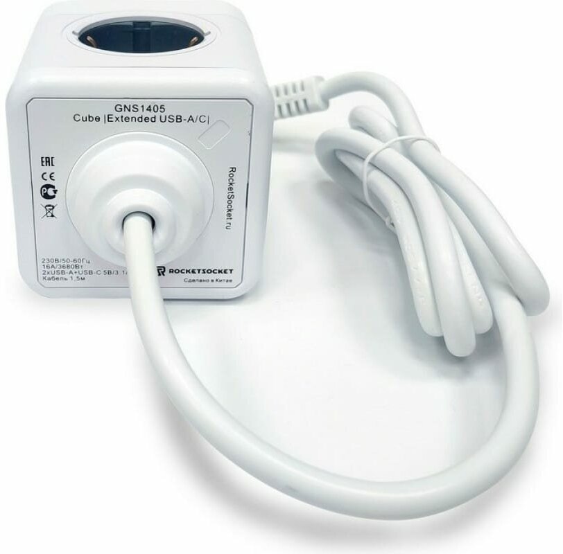 Удлинитель RocketSocket Cube Extended 1405, белый-серый (GNS1405)