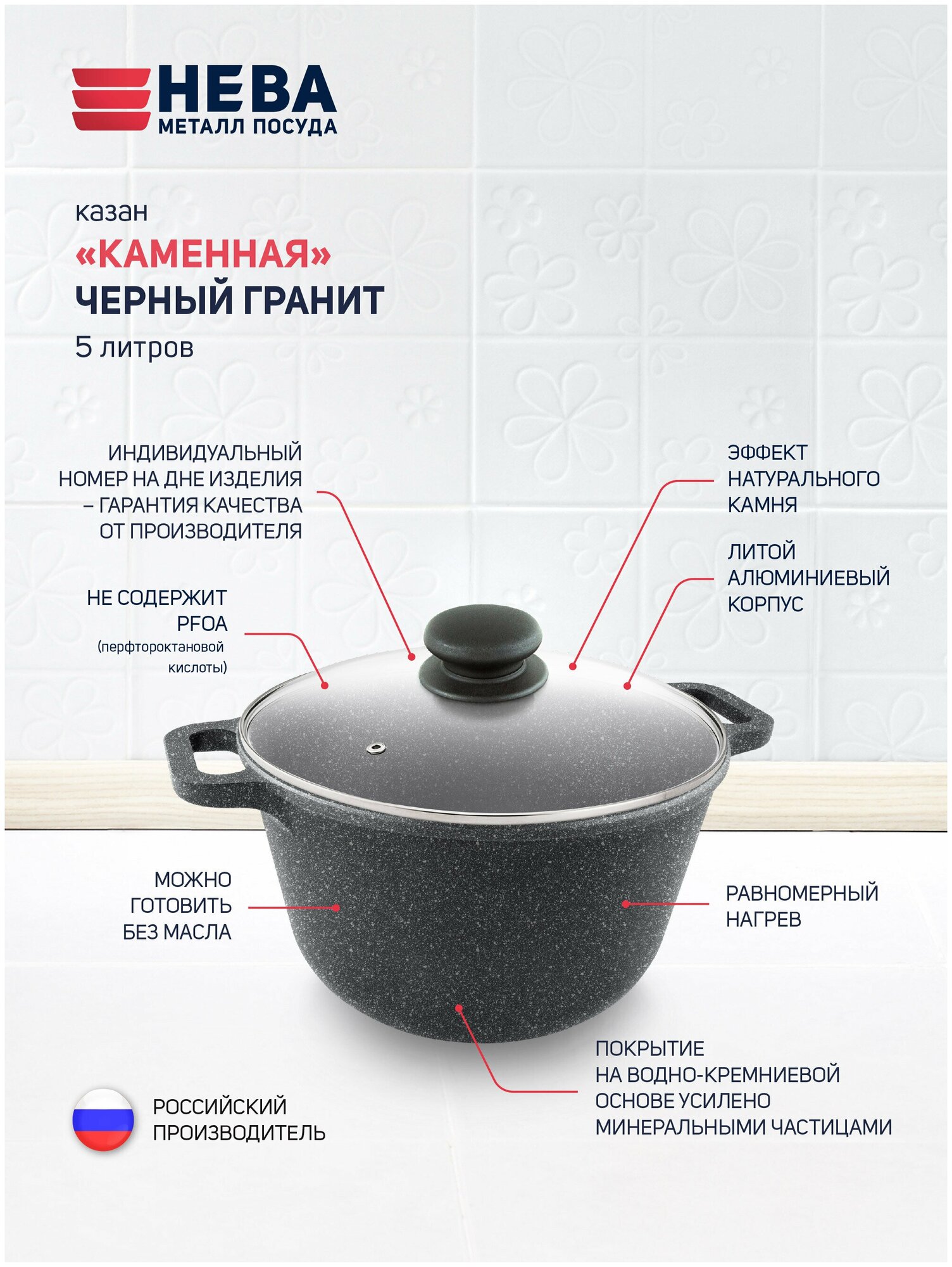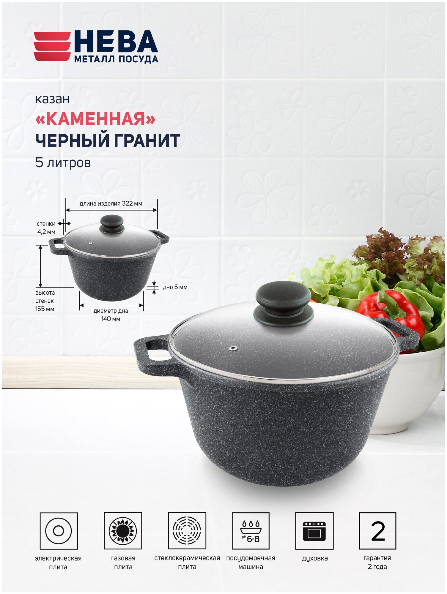 Казан 3л нева металл посуда Каменная стеклянная крышка черный гранит алюминий