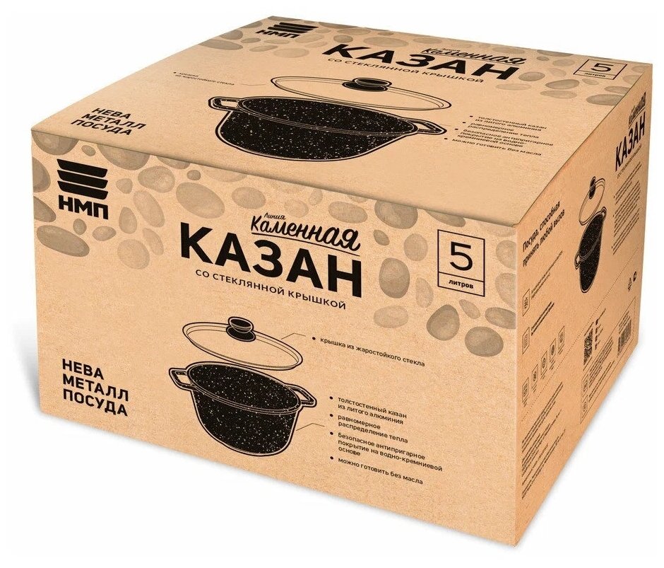 Казан Нева Металл Посуда НМП "Каменная" Чёрный гранит со стеклянной крышкой 5л, 186850