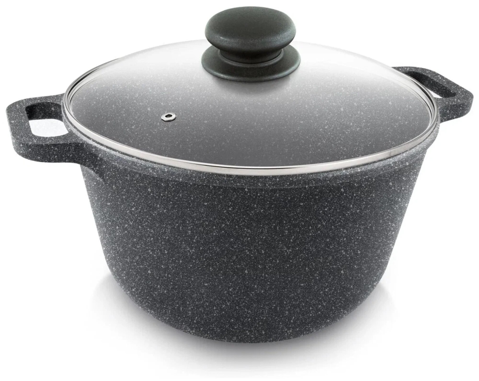Казан со стекл. крышкой 5л "Каменная" Чёрный гранит НМП