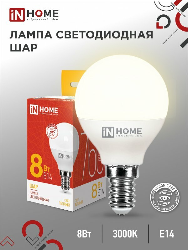 Ниже Вы можете прочитать отзывы на Лампа светодиодная LED-ШАР-VC 8Вт 230В Е14 3000К 760Лм IN HOME (10шт в упаковке), ознакомится с подробными характеристиками, посмотреть интересные обзоры и фотографии на Лампа светодиодная LED-ШАР-VC 8Вт 230В Е14 3000К 760Лм IN HOME (10шт в упаковке).