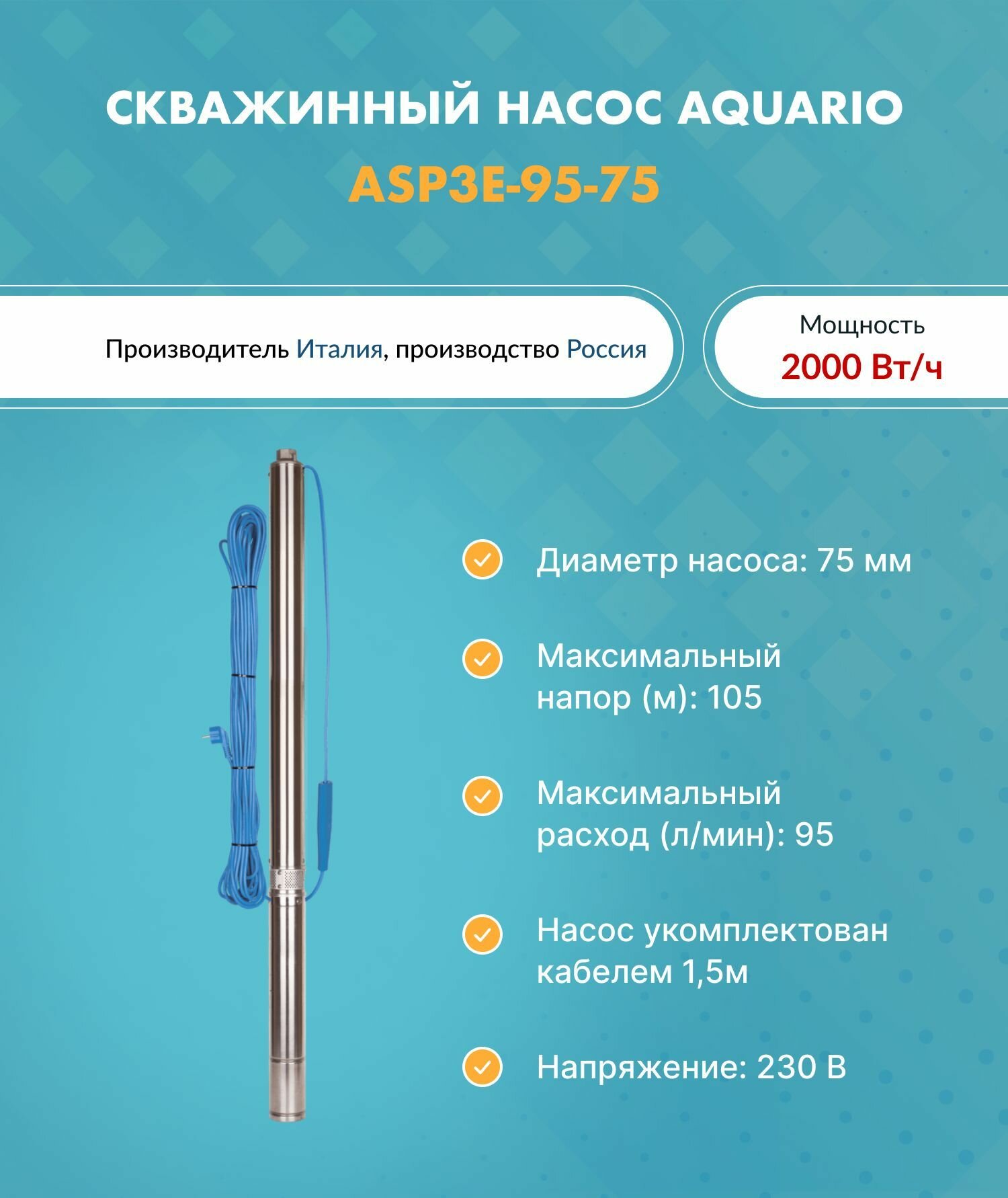 Купить Aquario, ASP 3Е-95-75 кабель 1,5 м, Насос скважинный Акварио