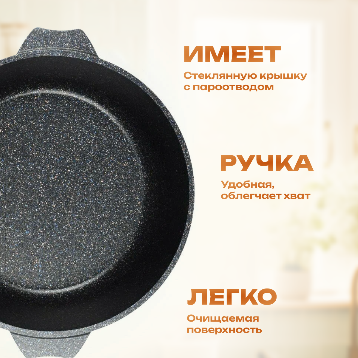 Сковорода-жаровня Мечта Гранит, с крышкой, диаметр 30 см