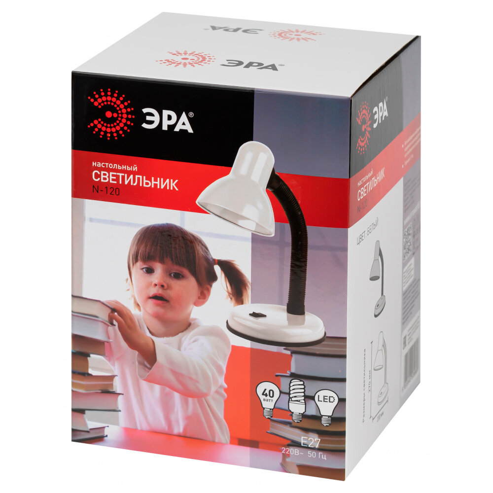 N-120-E27-40W-W Светильники настольные наст.светильник N-120-E27-40W-W белый, ЭРА C0041452 (1 шт.)
