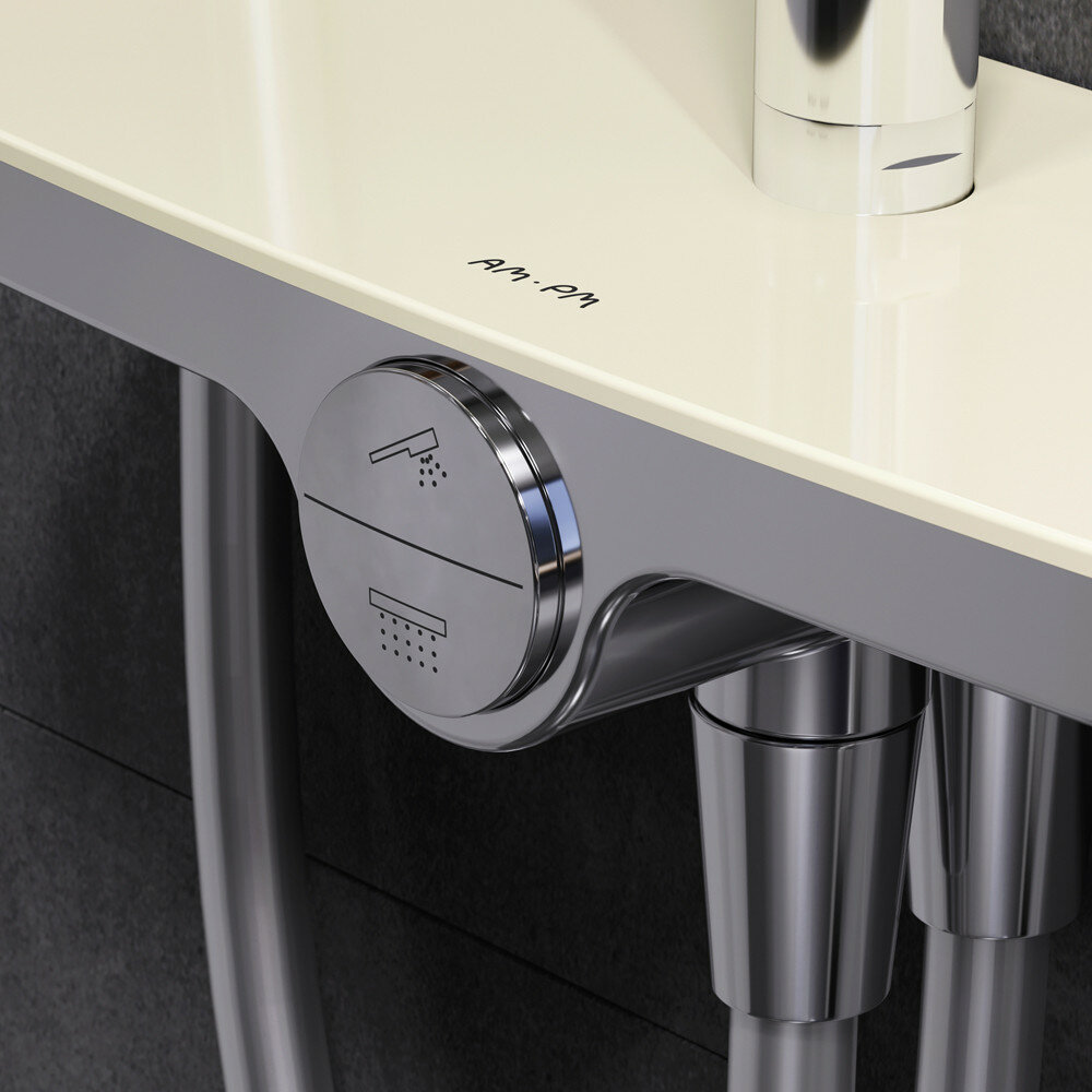 Душевая система с тропическим душем и смесителем AM.PM Like F0780200 хром с полочкой для аксессуаров и интегрированной кнопкой переключения между тропическим и ручным душем, без излива, Германия