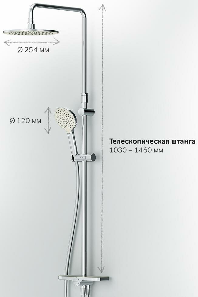 | Дополнительная информация | материалы: нержавеющая сталь, ABS-пластик, латунь; телескопическая штанга: от 1030 до 1460 мм |