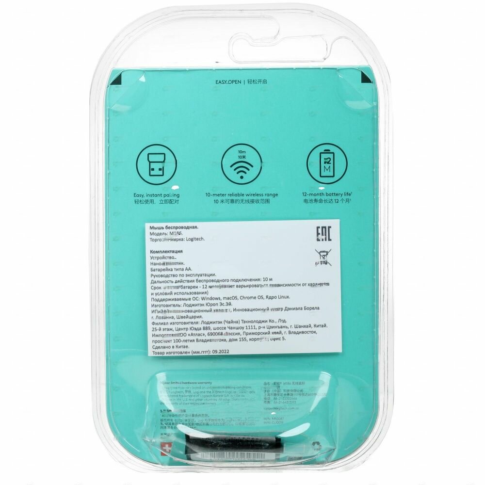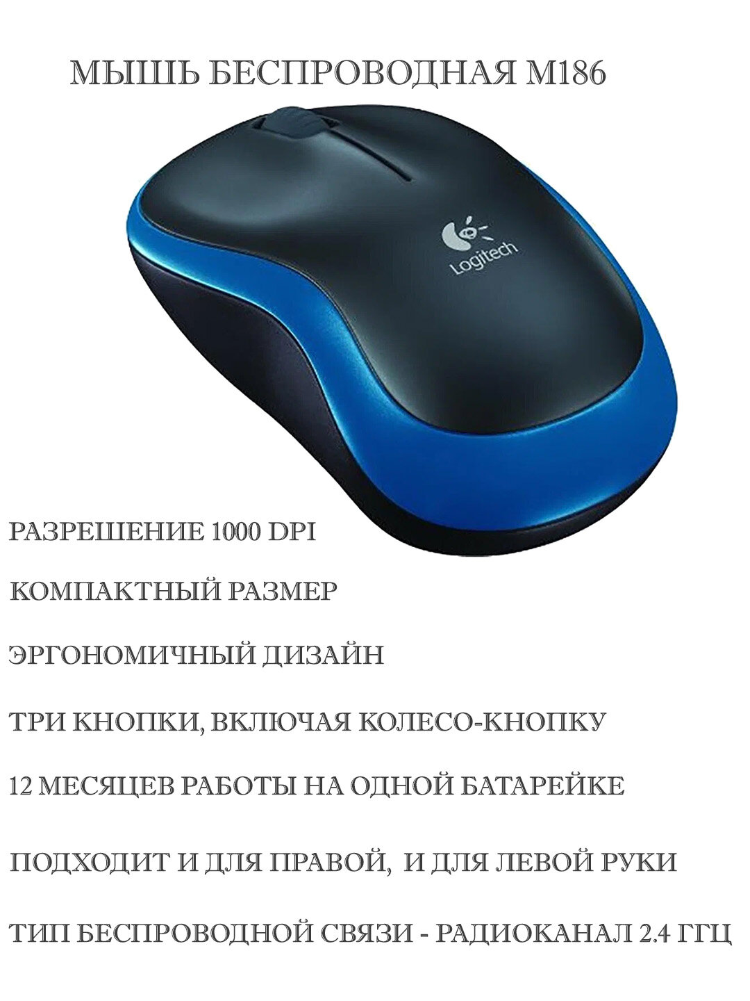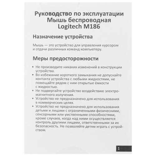 СохранитьМышь беспроводная Logitech M186 синяя 910-004132 интересное: