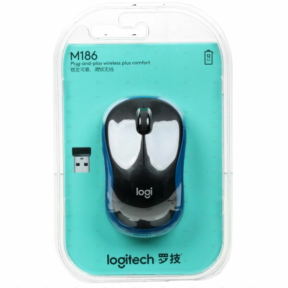 Купить Мышь беспроводная Logitech M186 синяя 910-004132