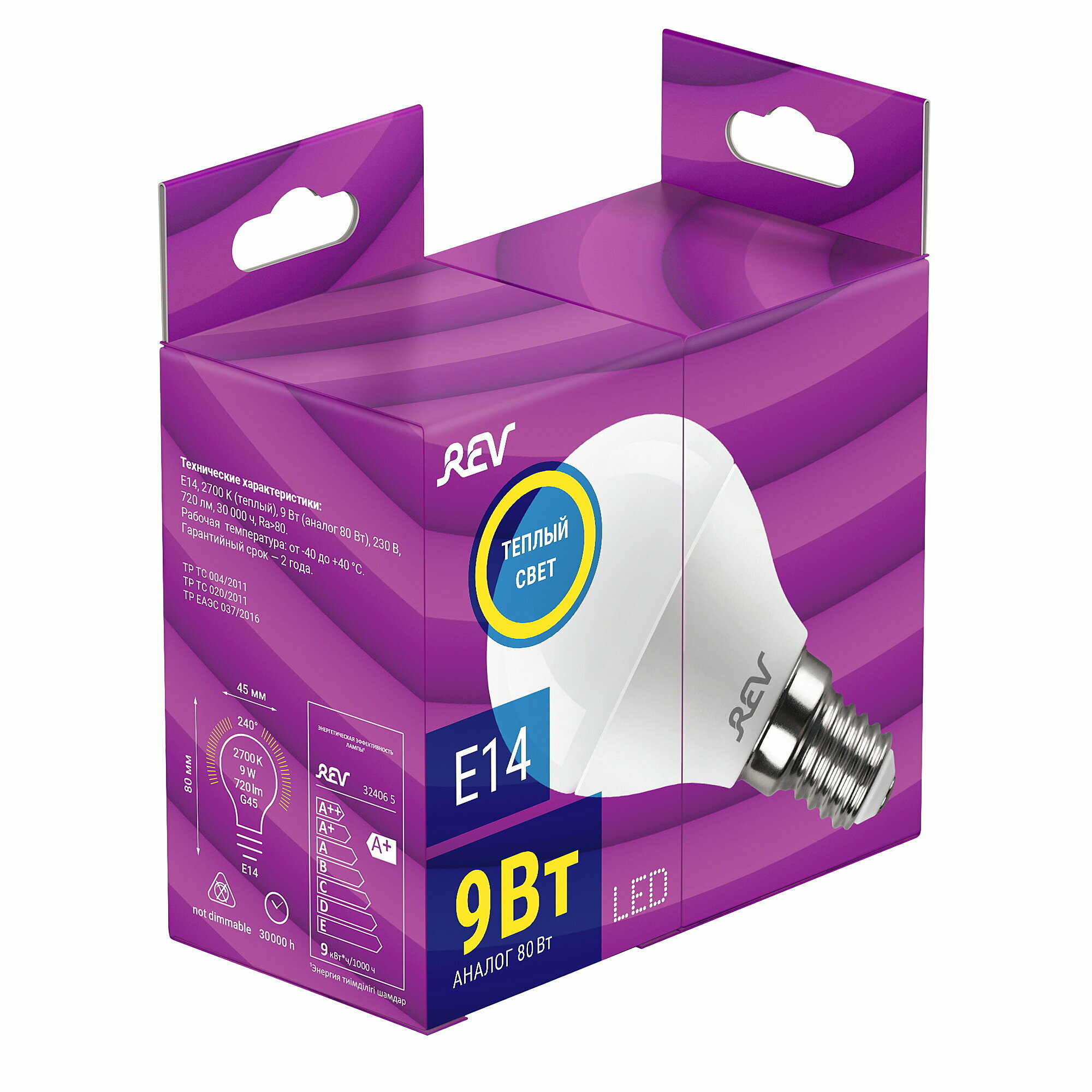 Лампа светодиодная REV шар G45 9 Вт Е14 2700K 32406 5