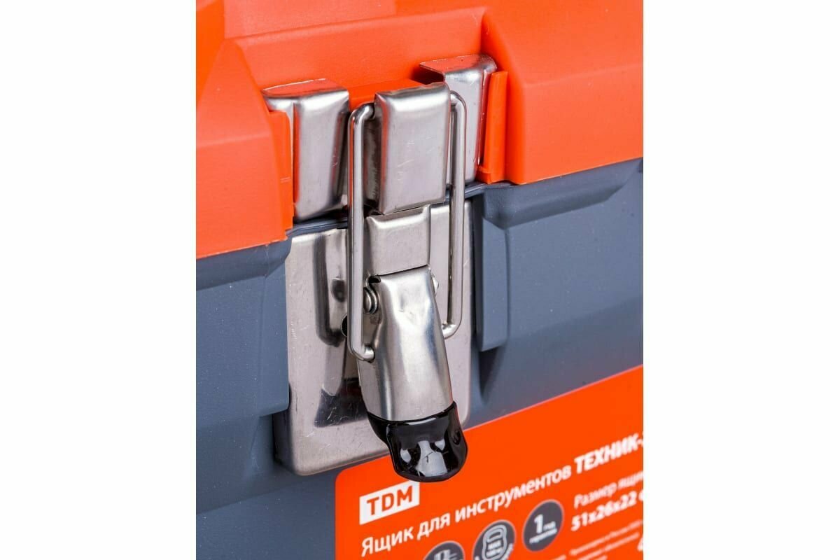 TDM SQ1032-0203 Ящик для инструментов ТЕХНИК-22, 56х28х24 см, метал. замки, лоток, два органайзера, «Рубин»