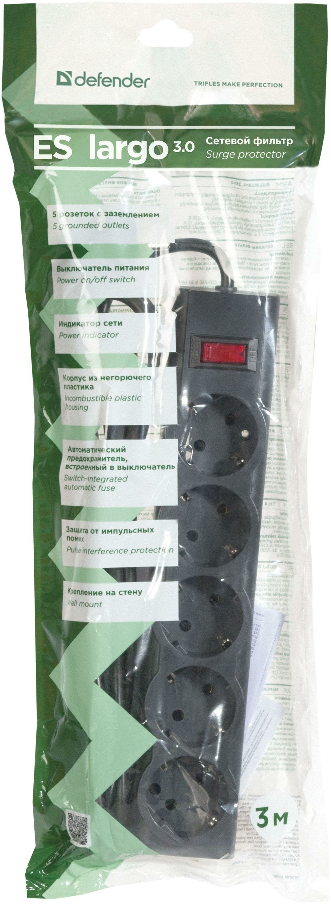 Купить Сетевой фильтр Defender ES largo черный 3.0 м, 5 розеток