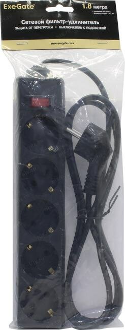 Сетевой фильтр ExeGate Ex221175rus Sp-5-1.8b (5 розеток, 1.8м, евровилка, черный)