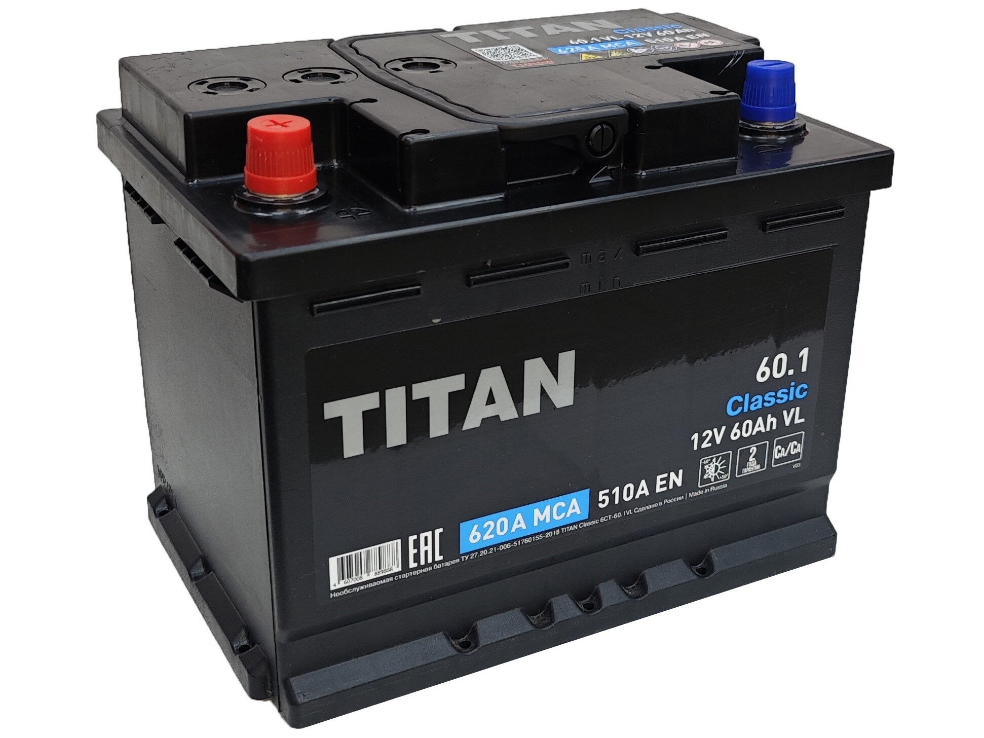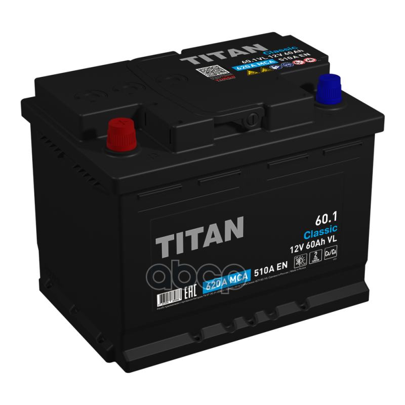 Аккумулятор автомобильный 60А*Ч TITAN Classic 60.1 VL 510А 242х175х190 (+/-) L2 4607008889888 интересное: