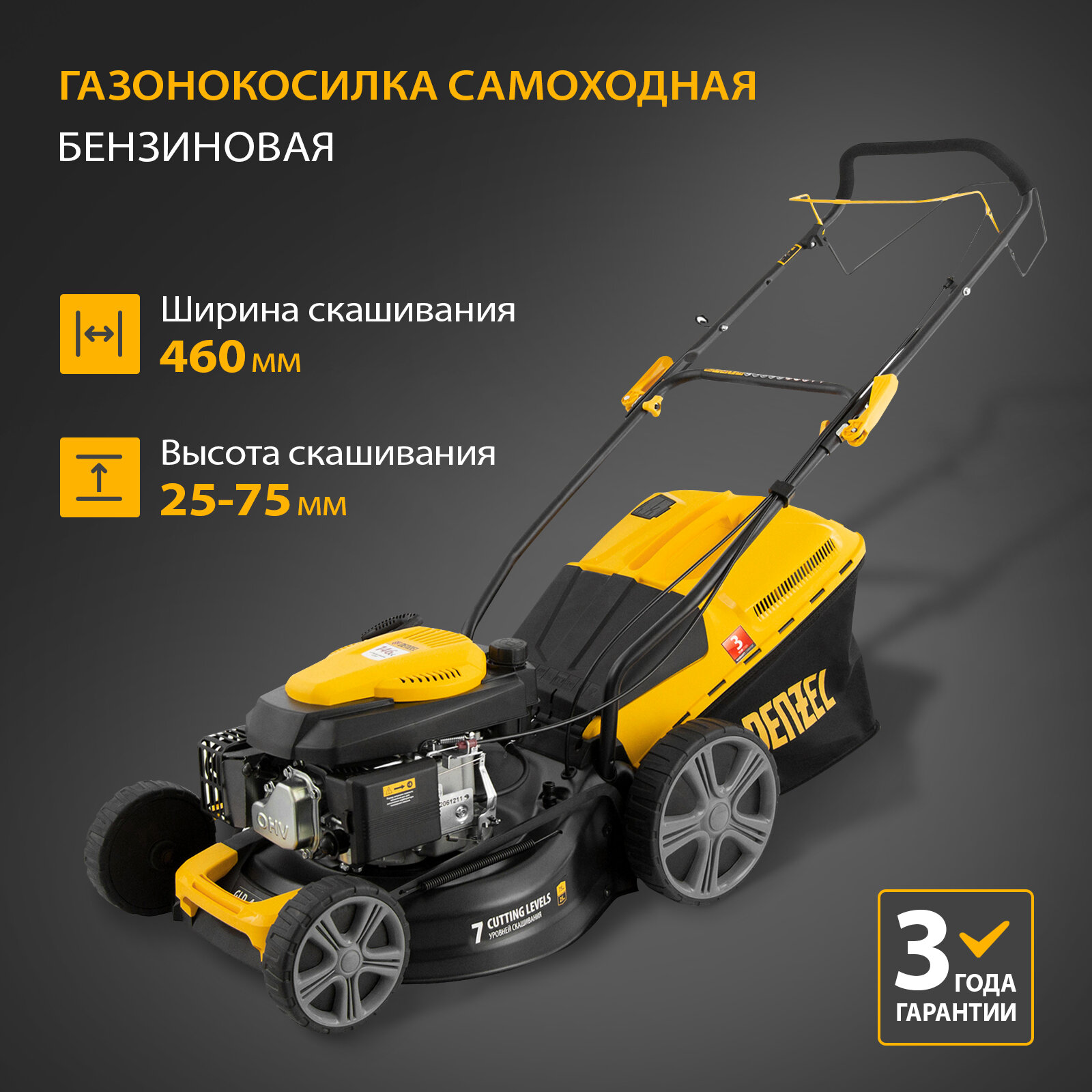 Газонокосилка бензиновая DENZEL GLD-460SP, 146 см3, ширина 46 см, 7 уровней