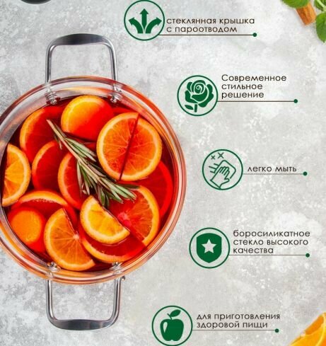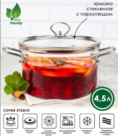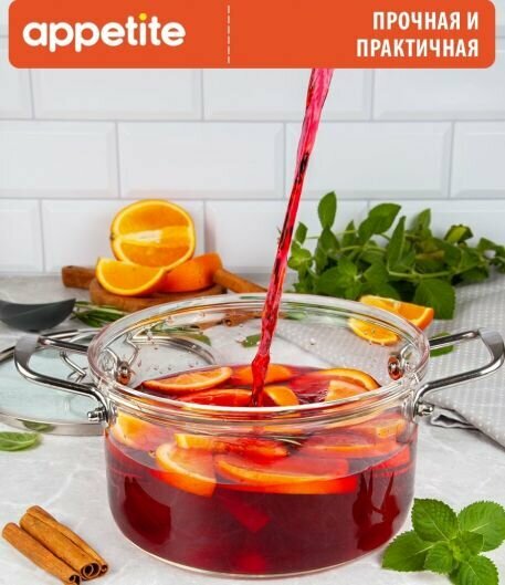 Купить Кастрюля с крышкой Appetite Studio, стеклянная, 4,5 л