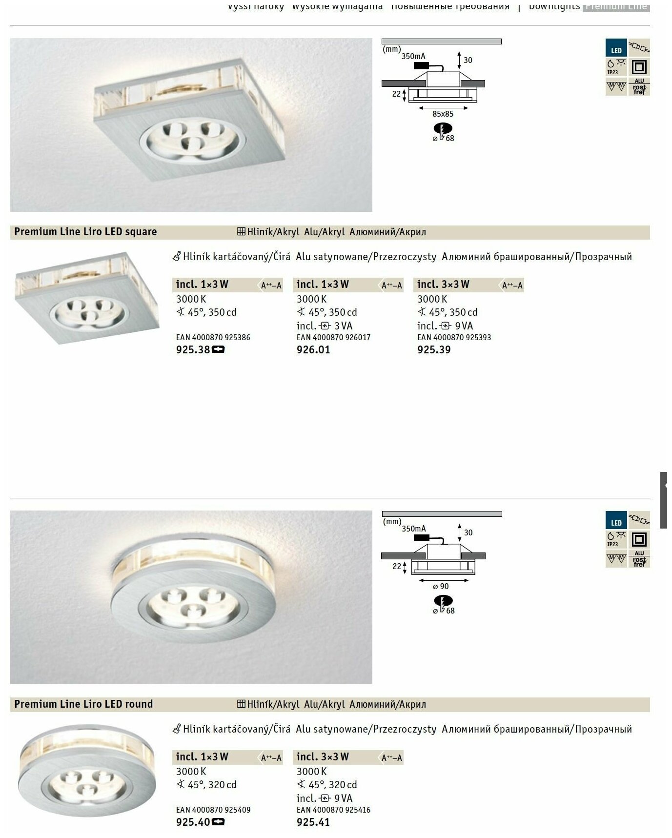 Светильник встраиваемый Premium EBL Liro rund LED 1x3W Alu-g интересное: