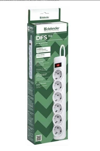 Сетевой фильтр Defender DFS 151 white (1.8м, 6 розеток, 10A) (99489)