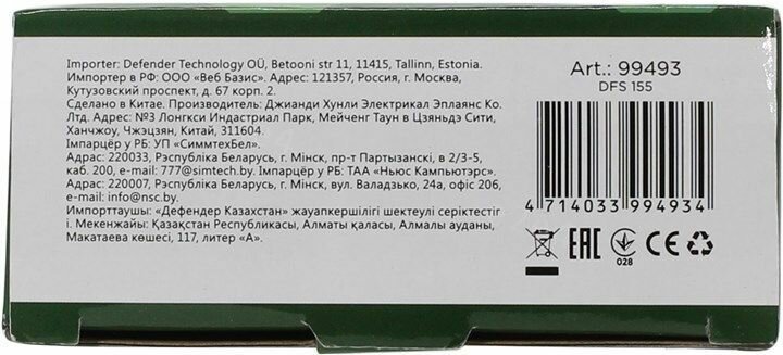 Сетевой фильтр Defender DFS 155 5 м, белый, 6 розеток(99493), 1877776