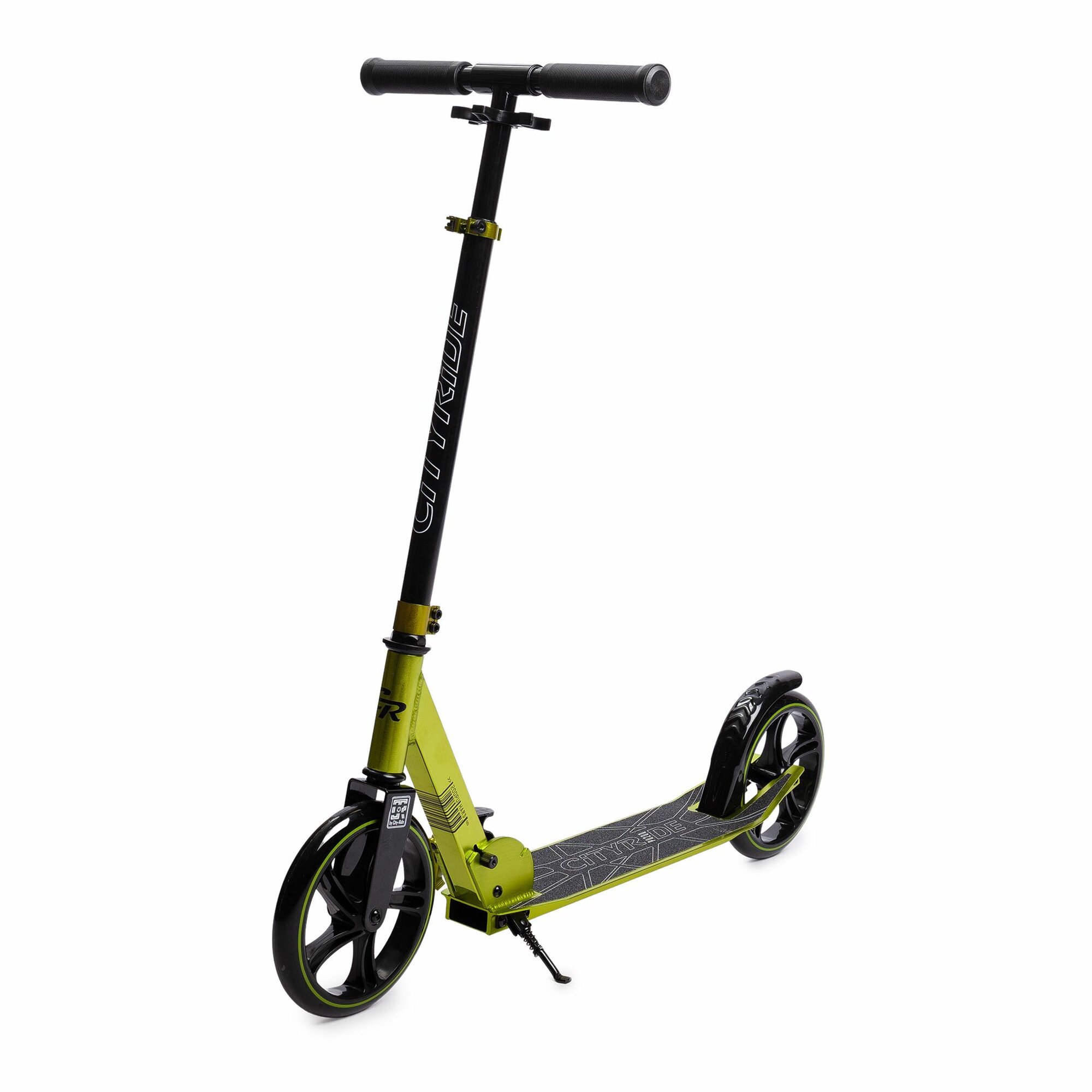 Самокат двухколесный CITYRIDE, складной, для детей/подростков, колеса PU 200/200, подножка, CR-S2-01GN