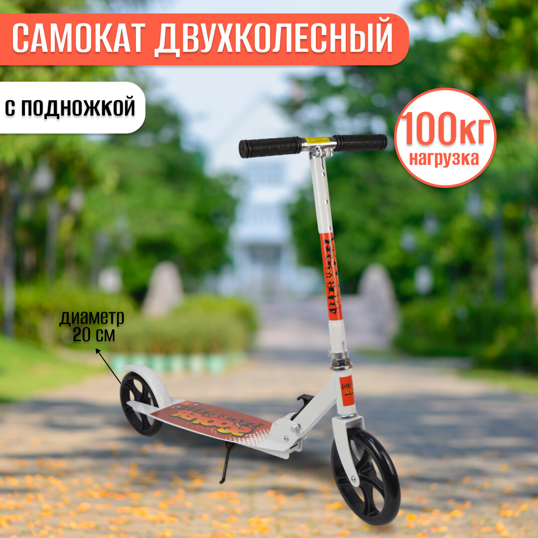 Самокат детский двухколесный, сталь + алюминий, колеса 200 мм, PU, ручки ППУ, белый интересное: