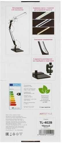 Настольный светодиодный светильник ARTSTYLE TL-402B черный, 10 Вт, с регулируемой яркостью и цветом свечения, струбцина в комплекте