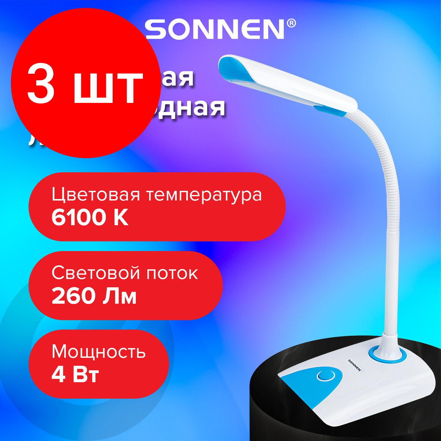 Настольная лампа-светильник SONNEN OU-146, на подставке, светодиодная, 4 Вт, белый/синий, 236671 (арт. 236671)
