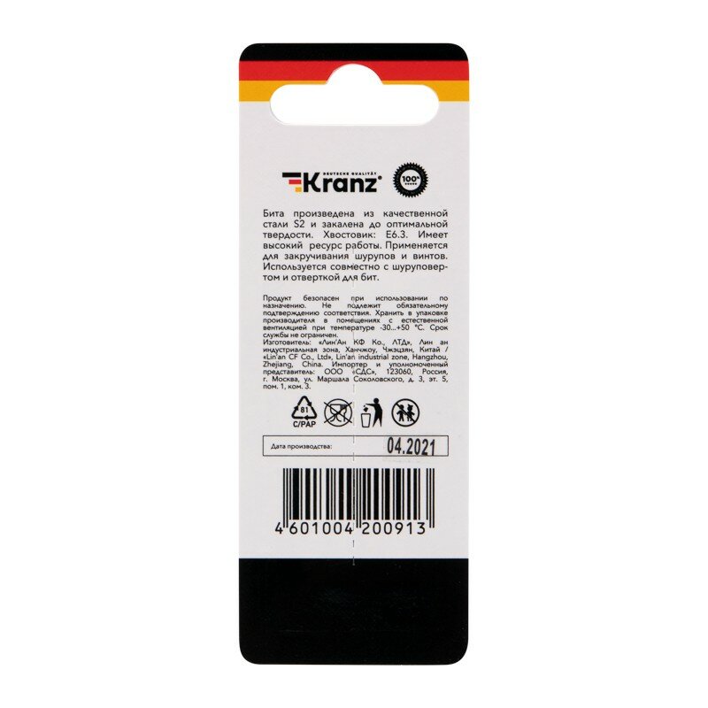 Бита Kranz IMPACT PH2x50 мм для шуруповерта интересное: