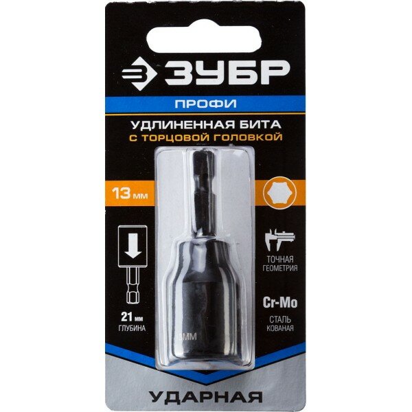 ЗУБР Бита ЗУБР "профи" с торцовой головкой, удлиненная, хвостовик E 1/4", 13мм, 1шт, ( 26377-13 )