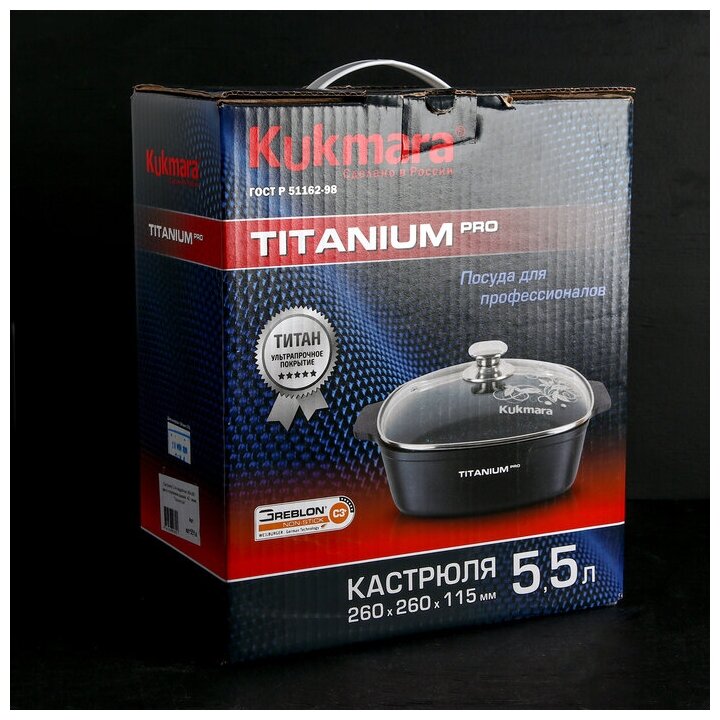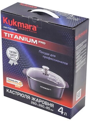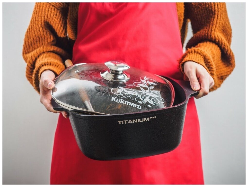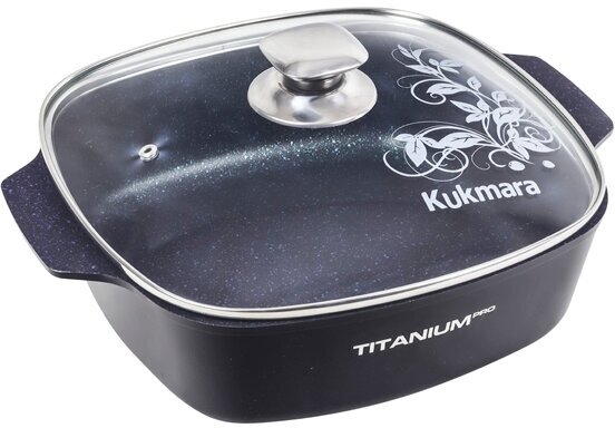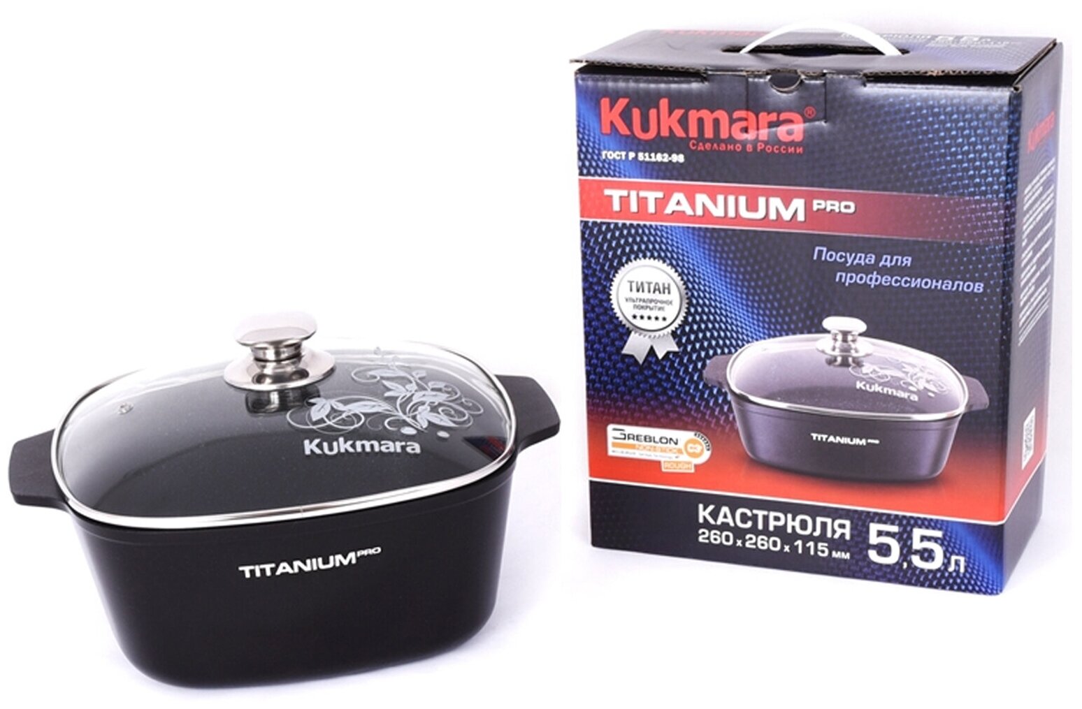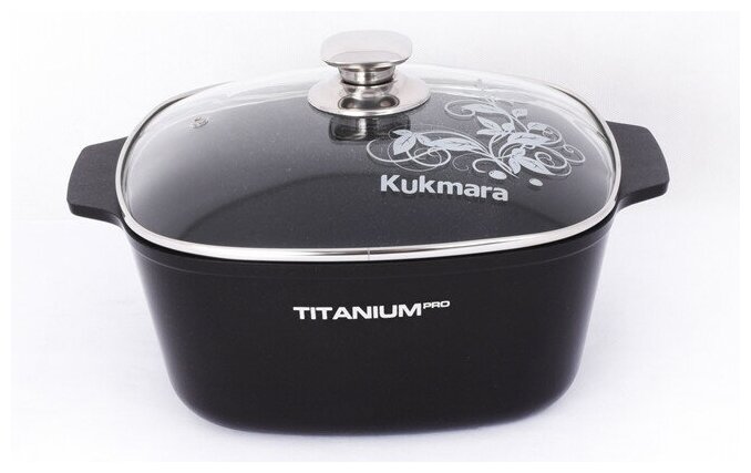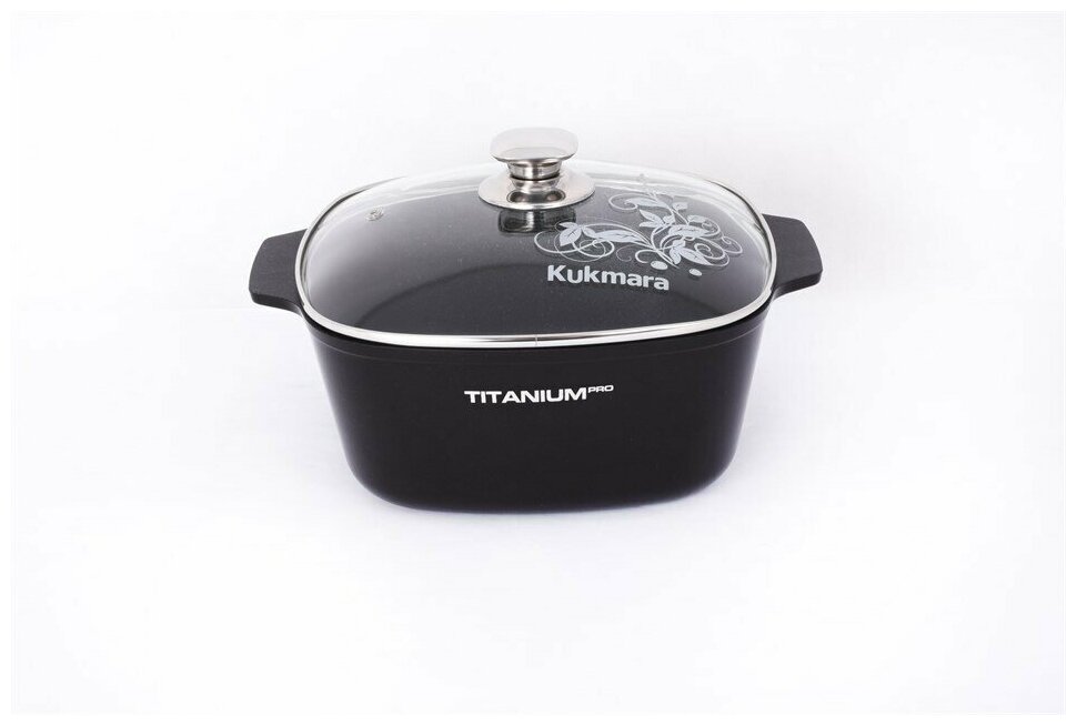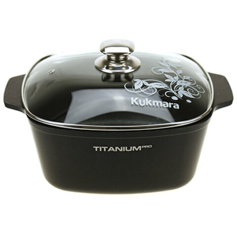 KUKMARA Кастрюля квадратная Titanium pro, 5,5 л, со стеклянной крышкой, антипригарное покрытие