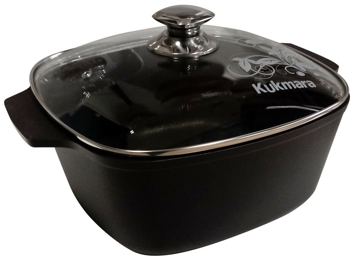Кастрюля KUKMARA Titanium pro литая 5,5 л квадратная 26х26 см со стеклянной крышкой