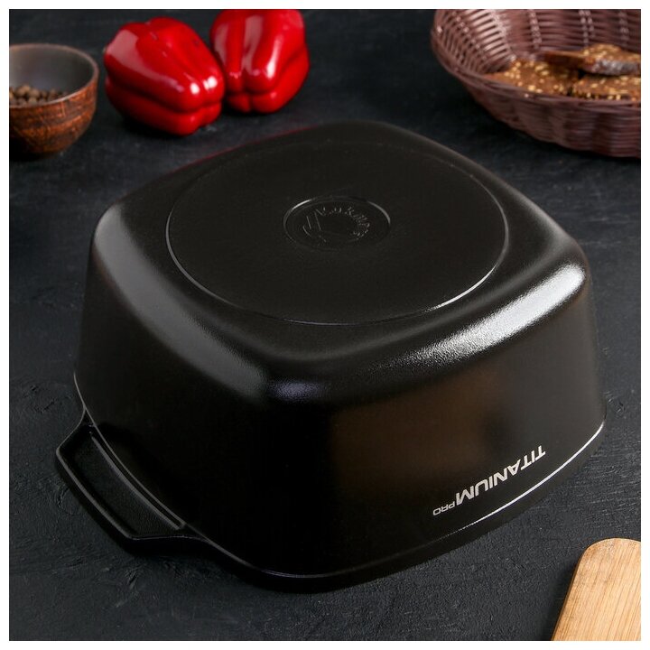 Кастрюля квадратная Titanium pro, 5.5 л, со стеклянной крышкой, антипригарное покрытие
