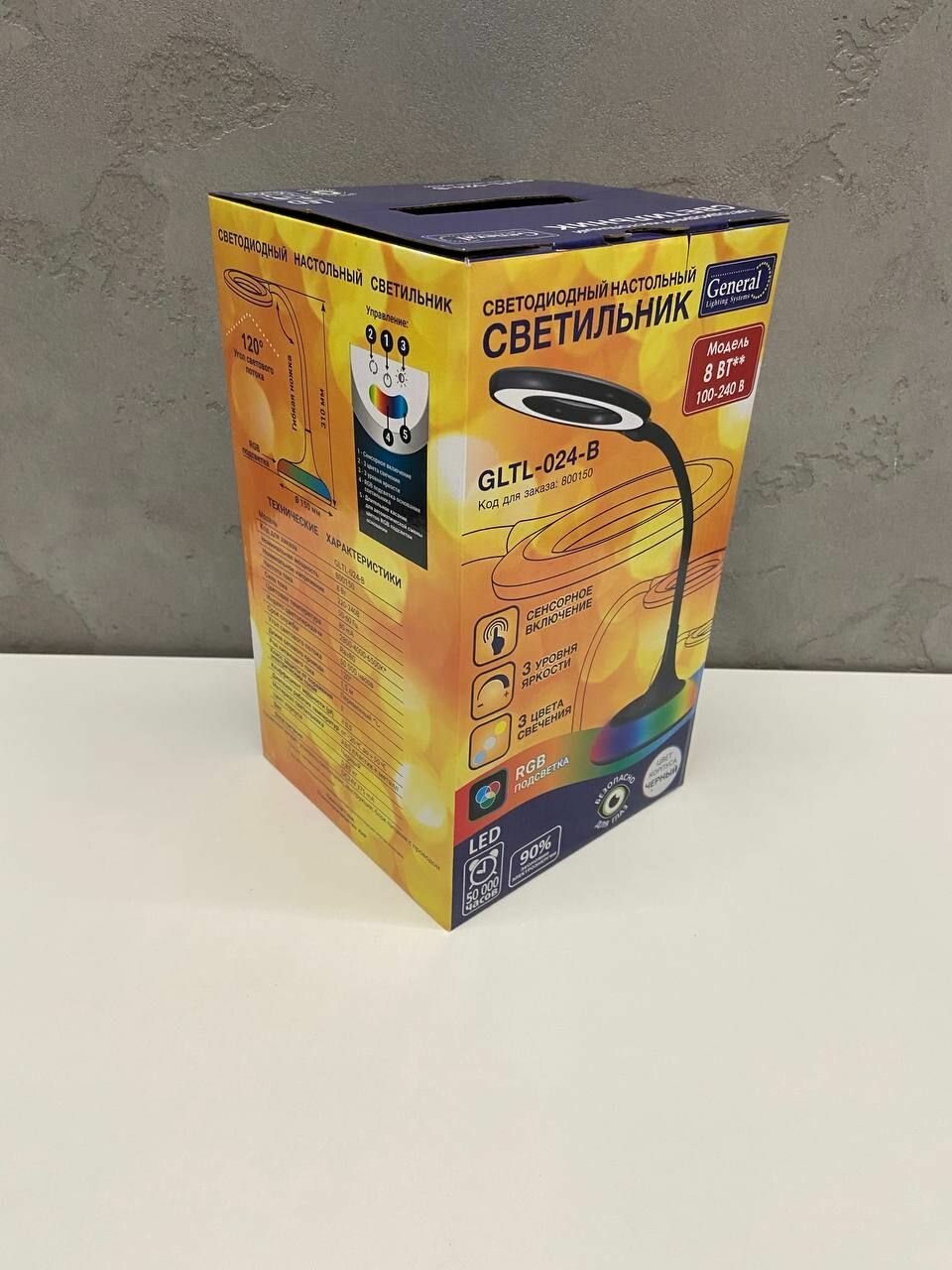 Светильник GLTL-024-B 8вт 530лм rgb черный + сенс вкл, 3 шага диммир, 3 ур яркости (1/8), GENERAL 800150 (1 шт.)