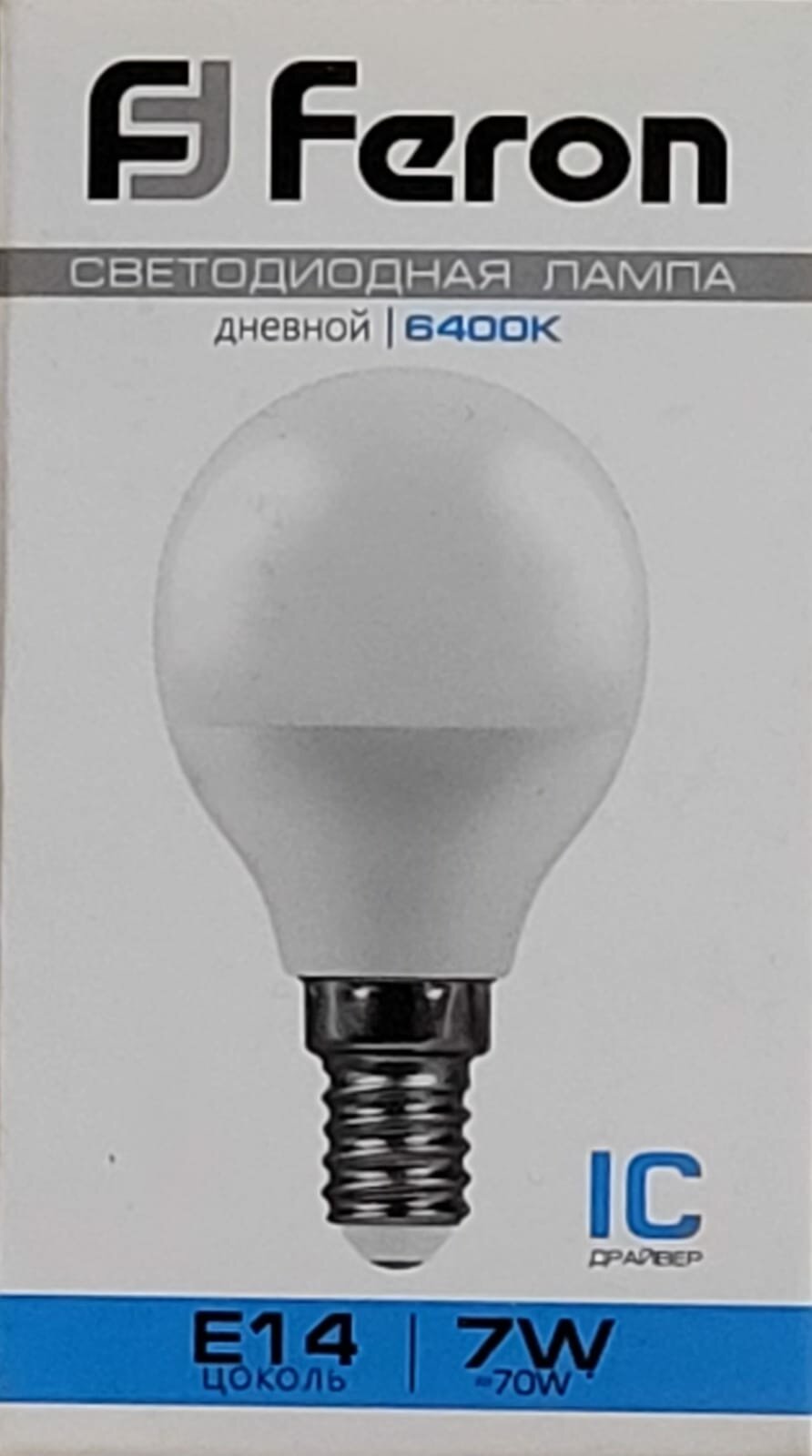 10шт/уп. Лампа LED Шар 7Вт 230B G45 E14 600Лм 6400К Свет Холодный белый арт. 25480 Feron, уп. 10шт