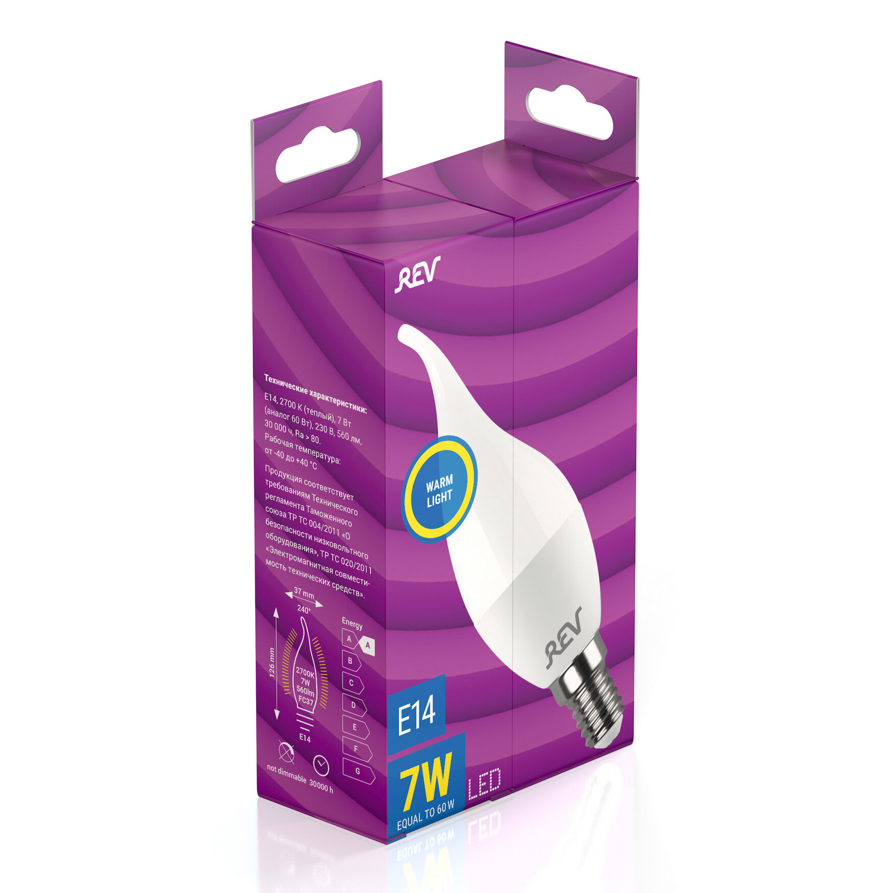 Светодиодная лампа REV, LED FC37 Е14 7W, 2700K, теплый свет 32351 8