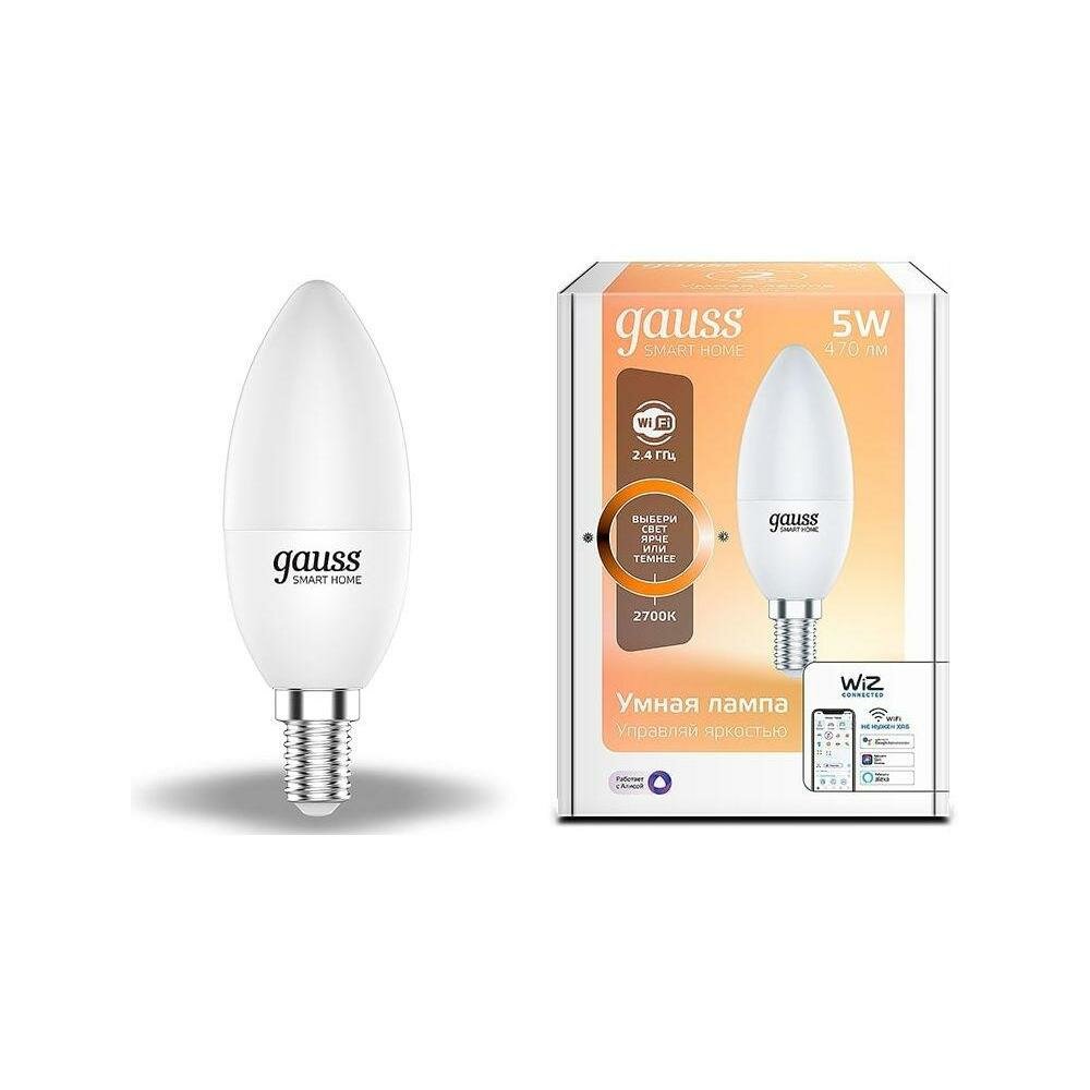 Умная лампа GAUSS Smart Home E14 белая 5Вт 470lm Wi-Fi (1шт) [1100112]