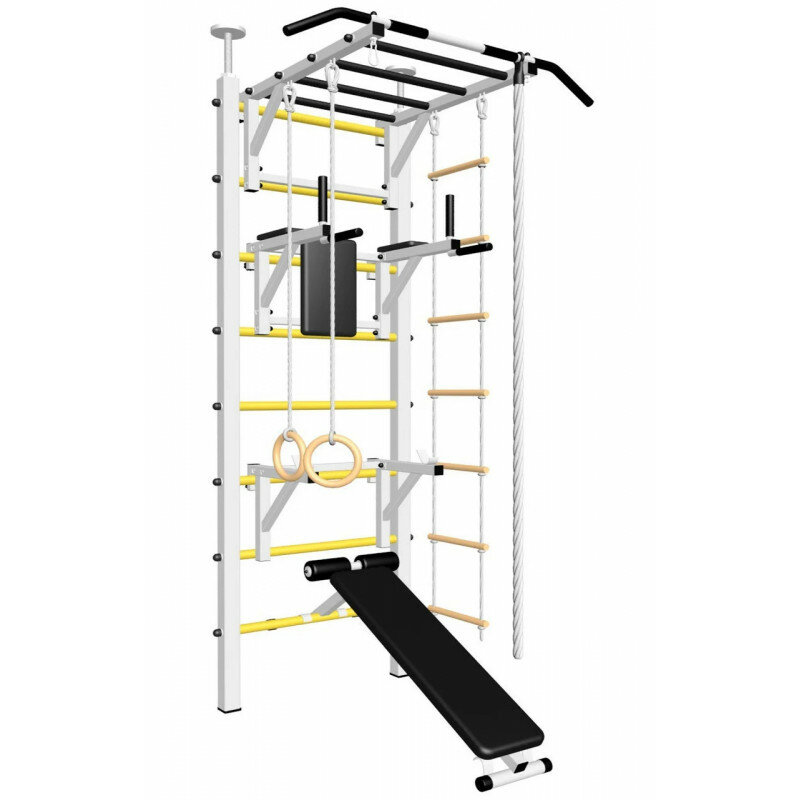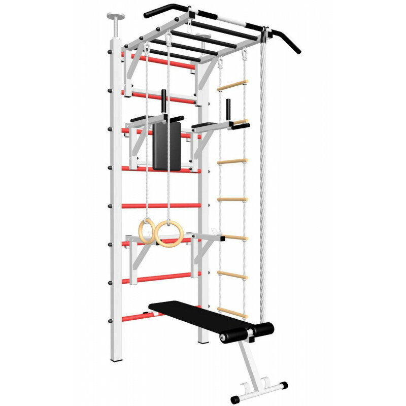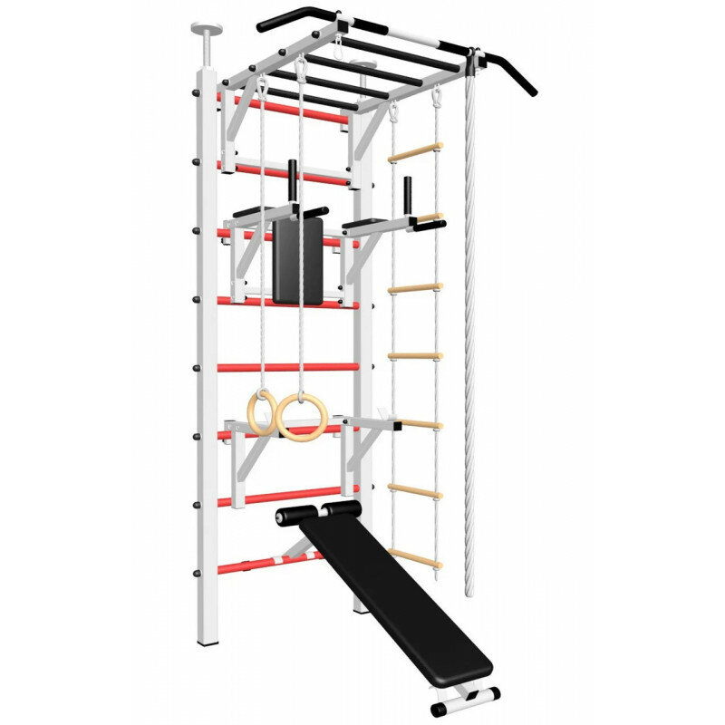 | Комплектация | брусья / веревочная лестница / гимнастические кольца / держатель штанги / канат / скамья / спинка / турник-рукоход |