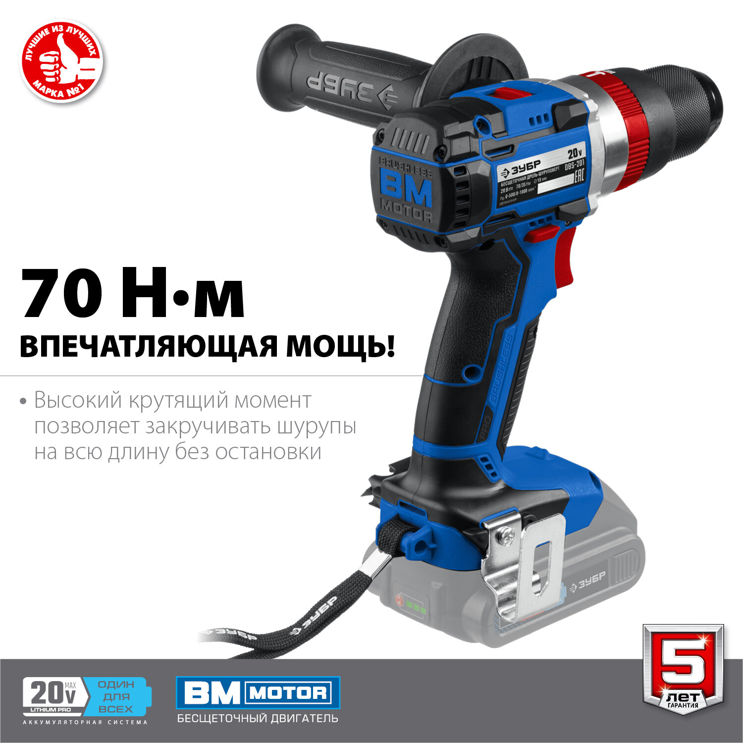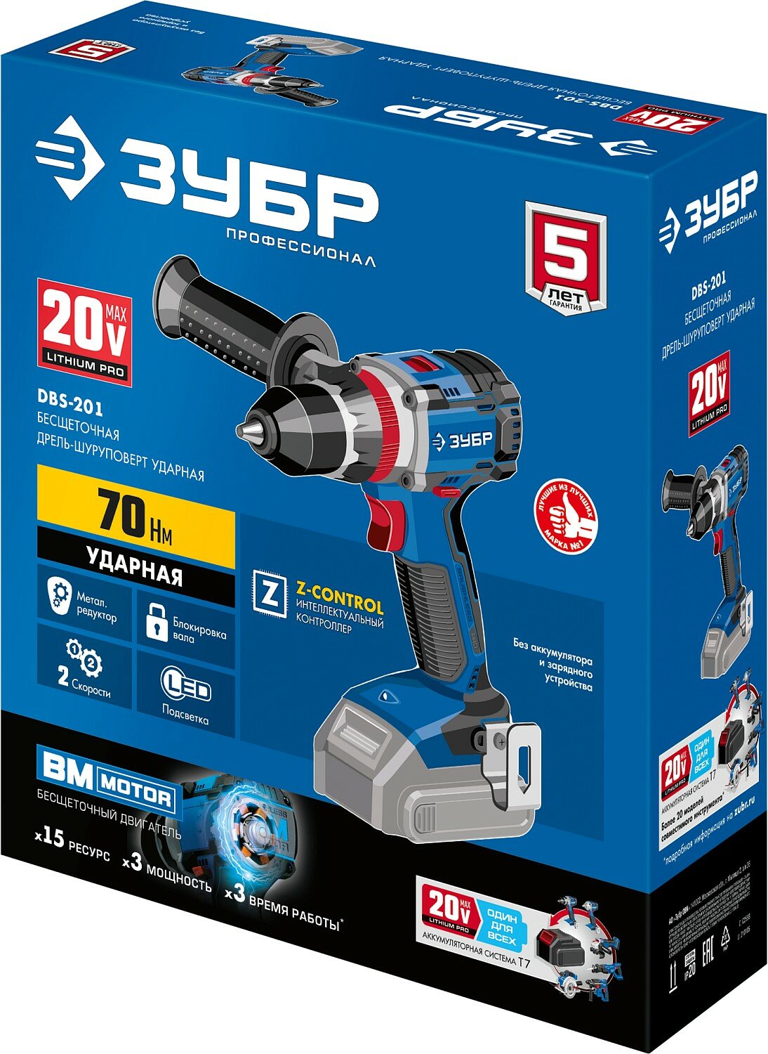 ЗУБР 20 В, бесщеточная, без АКБ, в коробке, ударная дрель-шуруповерт DBS-201 Профессионал