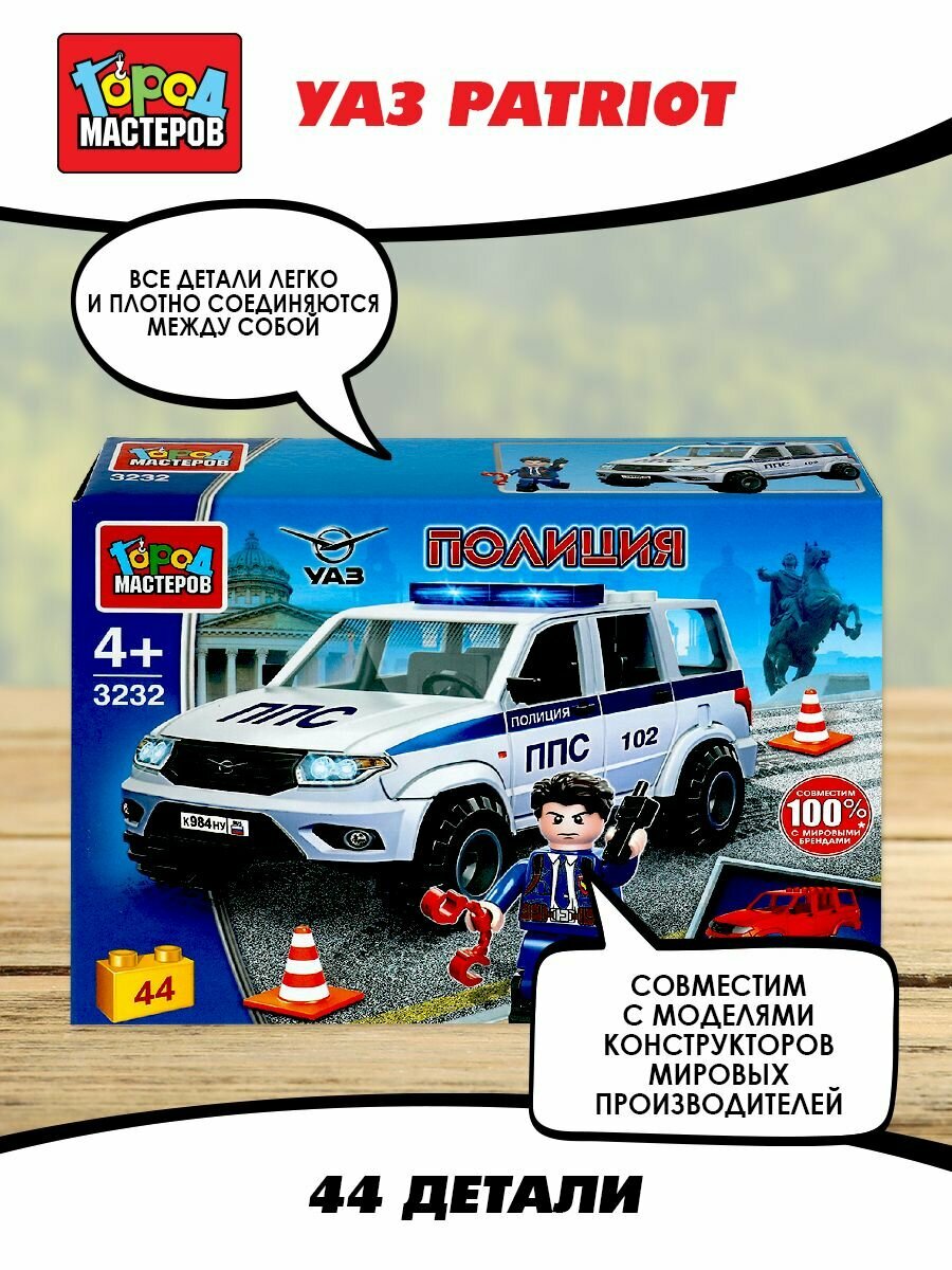 Конструктор для мальчиков машина УАЗ патриот Полиция 44 детали Город Мастеров