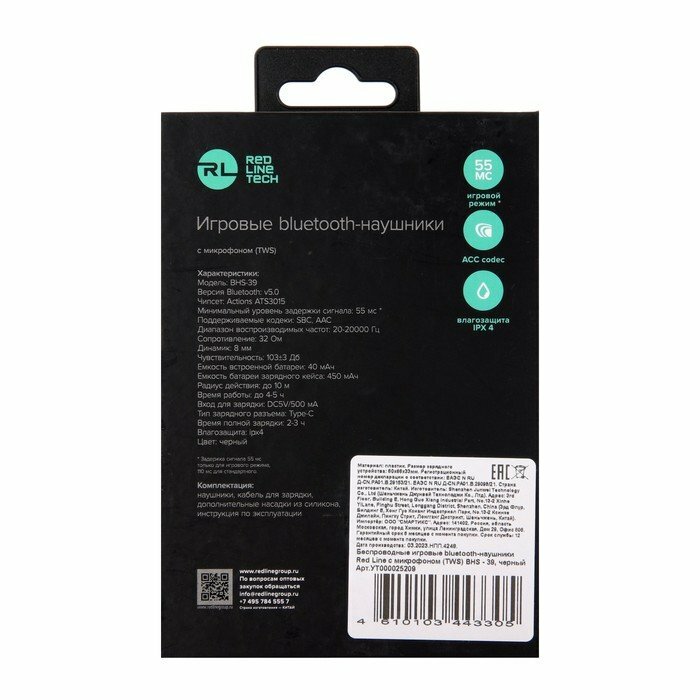 Игровые bluetooth-наушники Red Line с микрофоном (TWS) BHS - 39, черный,