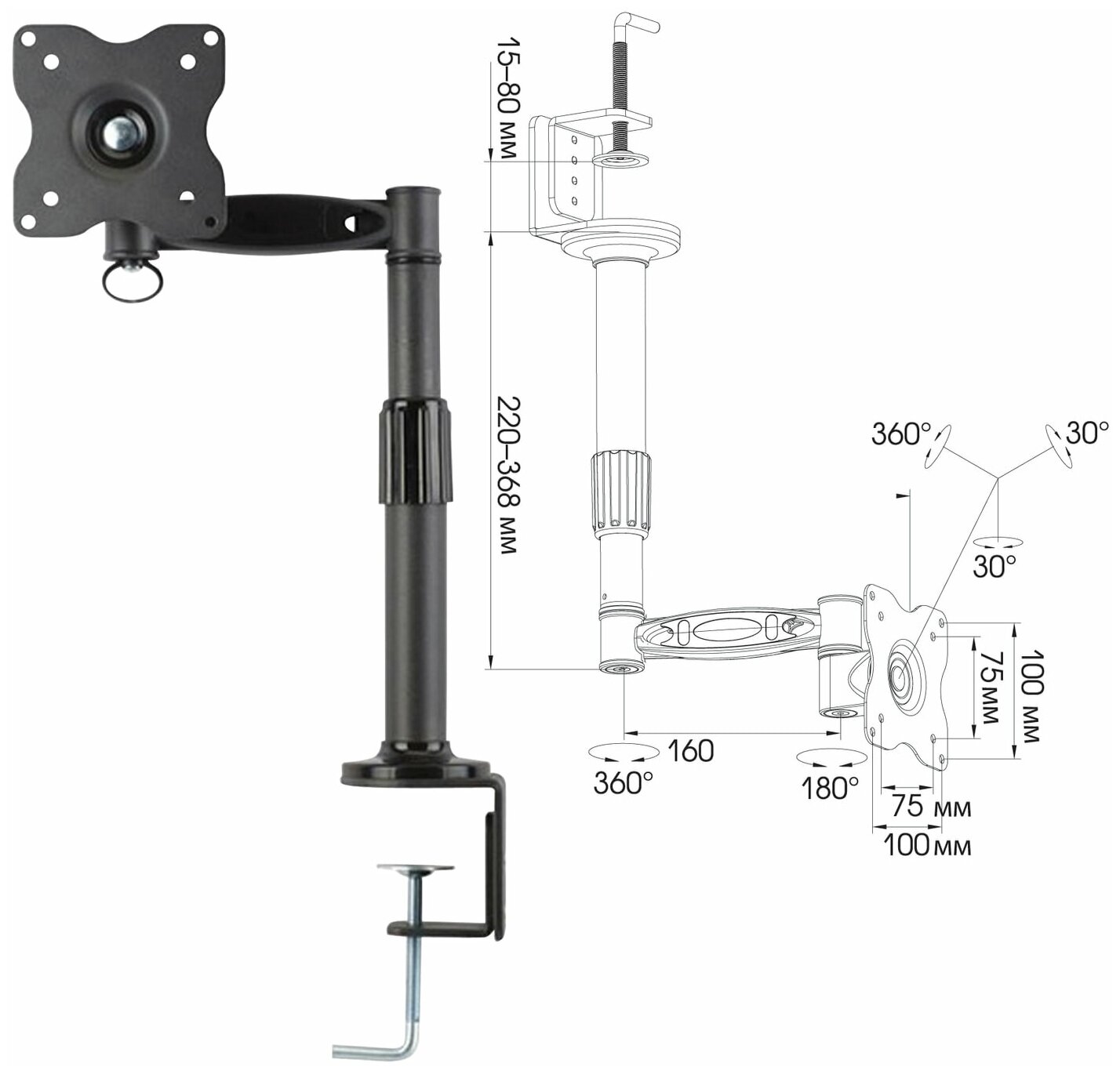 Кронштейн Unitype для монитора настольный KROMAX OFFICE-1 - (1 шт) интересное: