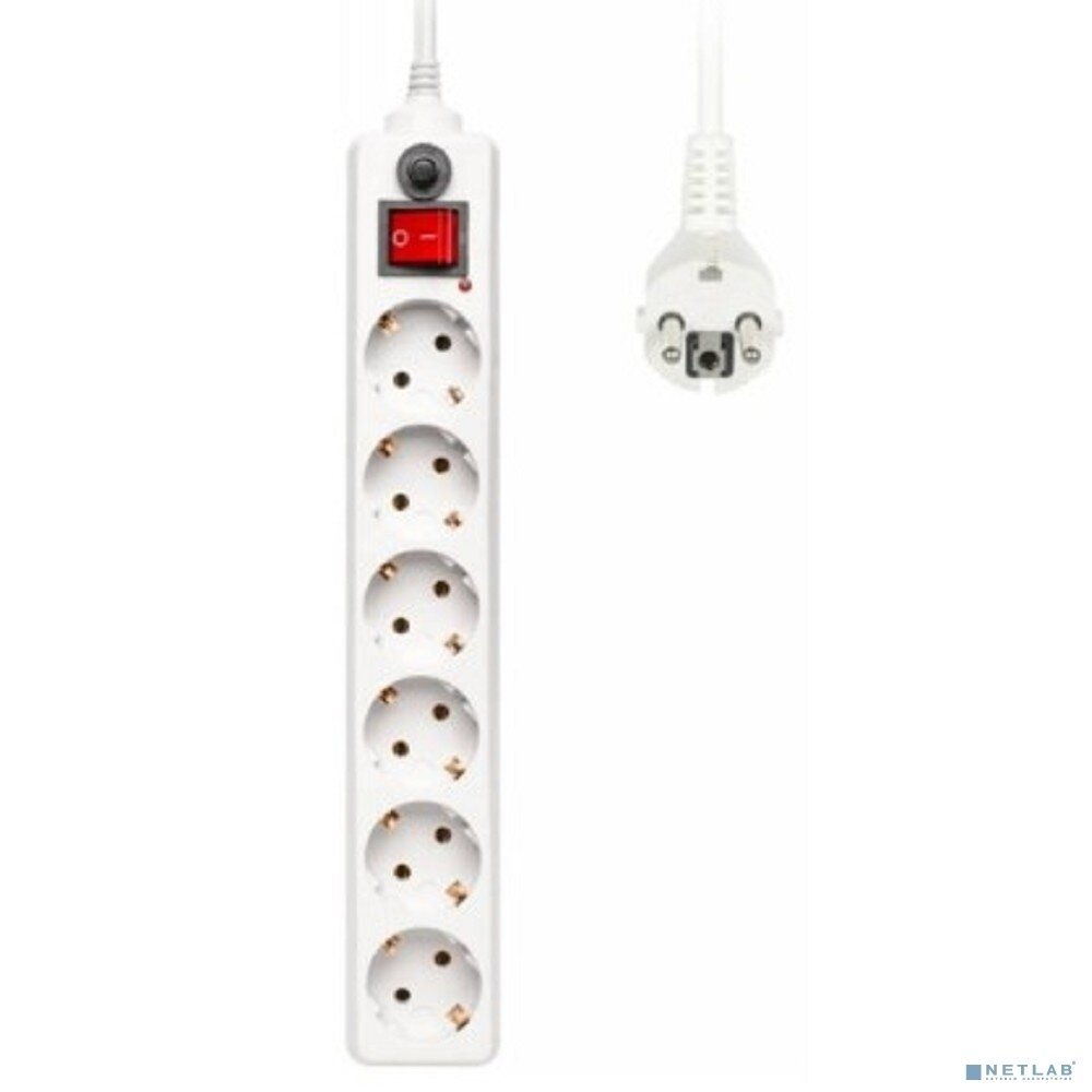 Сетевой фильтр Buro 600SH-1.8-W 1.8м, 6 розеток, с выключателем, белый