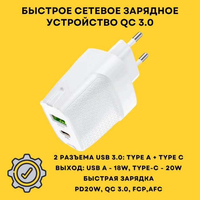 СЗУ, 1 USB 3.0 QC+1 PD 20W (C85A), HOCO, белый