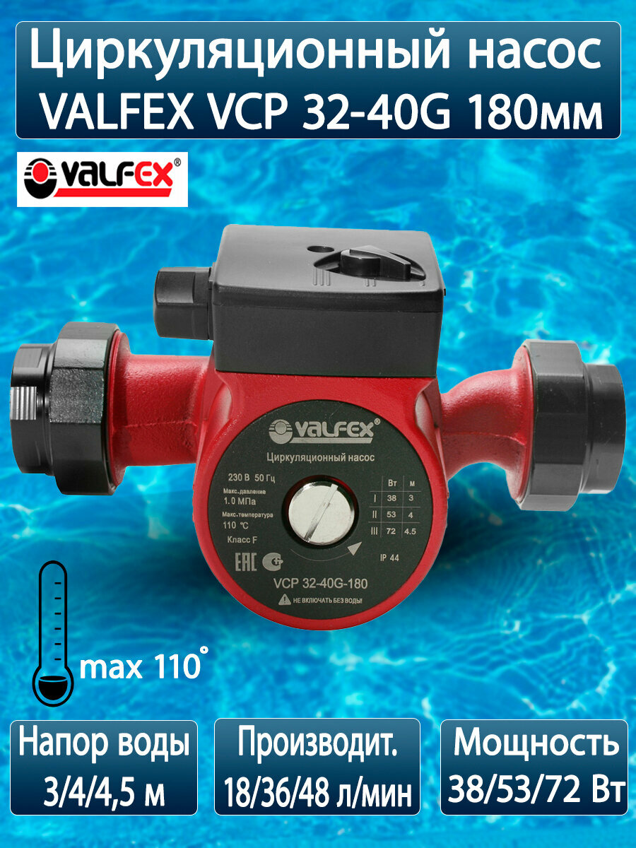 Купить Циркуляционный насос VALFEX VCP 32-40G 180мм (с гайками) (8))