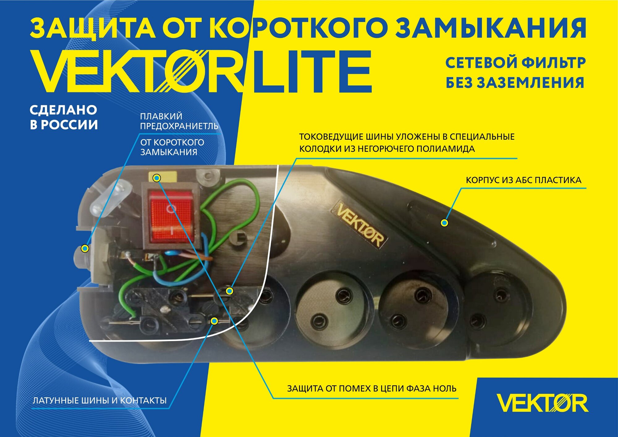 Купить Сетевой фильтр VEKTOR Lite, 5 розеток, 1.8 м, б/з, 10А черный